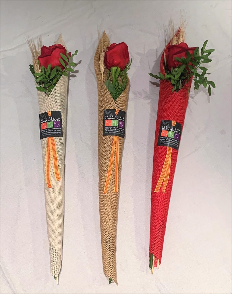 rosa amb embolcall de roba de sac