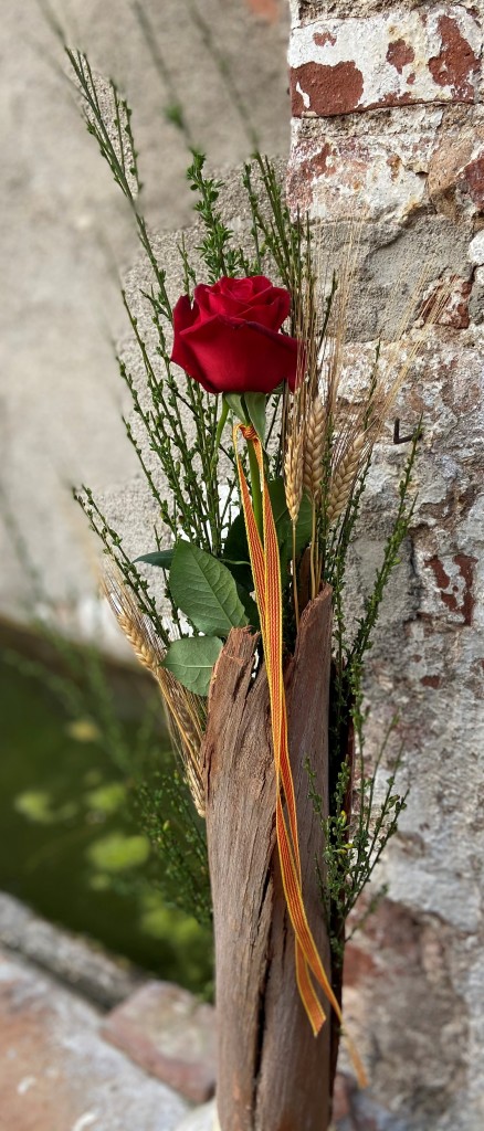Una rosa amb gerro d´escorça natural