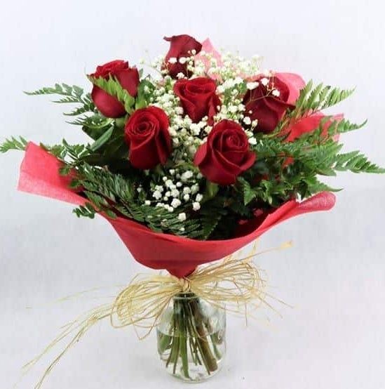 6 fresh roses in a bouquet
